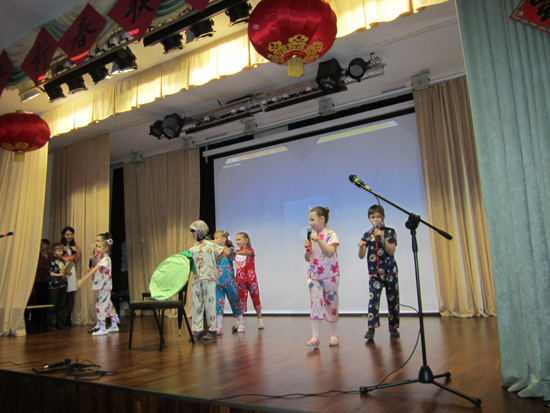 仅学4个月汉语的32中孩子表演“拔萝卜”