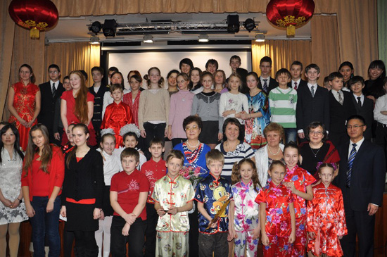 2013年2月20日-21日下午3时,由圣彼得堡孔子课堂主办,圣彼得堡区少年宫和圣彼得堡财经大学协办的蛇年春节联欢晚会分别在少年宫演出大厅和圣彼得堡财经大学音乐大厅隆重举行。两场演出吸引了圣彼得堡地区的6所中小学师生、家长和5所高校的大学生及中资机构代表、孔子课堂师生等近1000人参加和观看了中国春节文化活动。中国驻圣彼得堡总领馆胡斌领事、区政府教育官员、32中和574中学校长、652中学副校长、少年宫经理、财经大学校长及孔子课堂韩丹星校长、中国“龙报”主编出席活动并发表讲话,共同祝愿孔子课堂越办越红火!