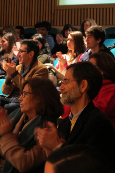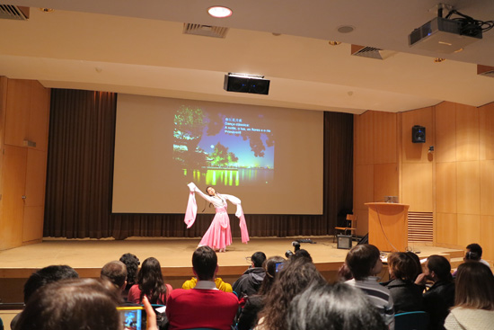 上午十一时许,孔子学院的中葡师生在会议厅表演了精彩的联欢节目,热闹喜庆的舞蹈《开门红》以大红的色彩为活动拉开序幕,随之上场的有悠扬动听的小提琴独奏《良宵》、优雅动听的越剧《白蛇传》选段、轻盈飘逸的古典长袖舞《春江花月夜》、甜美动人的民歌《幸福万年长》,以及载歌载舞展现少数民族风情的新疆民歌 «掀起你的盖头来» 和蒙古族民歌 «敖包相会»等等,赢得观众一阵阵热烈的掌声。孔子学院葡方院长孙琳主持了全场演出,她以幽默风趣的语言向观众介绍了中国庆祝春节和元宵节的民俗和每个节目的歌词大意和象征意义及故事情节。