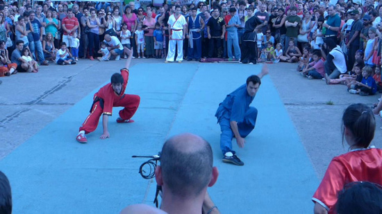 五点,由Leandro Martinachi领衔的希望武术俱乐部出场。瞬间,武者们被观众围了个水泄不通。Leandro师从中国师傅,已习武十九年。他与众弟子精彩的中国功夫展示,得到了观众阵阵的喝彩。