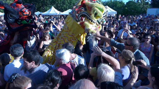 随后为民众带来惊喜的,是来自布宜诺斯艾利斯市的武术学校“蔡李佛”舞狮队。两只造型生动的南狮,随着有力、欢快的鼓点,舞出了千姿百态,为拉普拉塔市带来了新年美好的祝福。