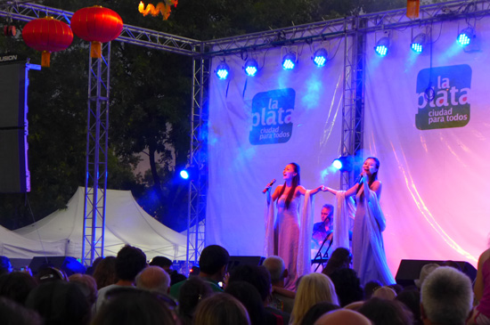 黄昏时分,在金色的夕阳下,双胞胎姐妹组合Wu Twins——吴银、吴金走上舞台。这对曾参与过北京奥运会闭幕式演出的姐妹,从拉普拉塔市市长手中接过“荣誉市民”证书。在随后一个小时的演出中,她们为拉普拉塔市民献上了湖北民歌“龙船调”、“彩云追月”、其他四首“新世纪”及自创歌曲。最后,吴氏姐妹以中、英、西三种语言演唱了经典曲目“阿根廷别为我哭泣”。曲终之时,全场掌声热烈非常,经久不息。