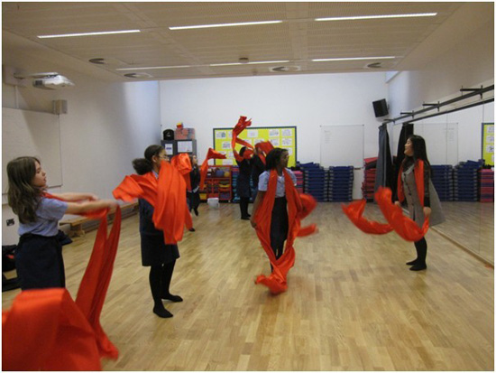 2月11日,正值蛇年大年初二,红绸舞飘满在圣玛丽女子学校各个年级。从七年级到十二年级。来自北京五十七中学的汉办老师乔桂霞将传统的红绸舞改编为结合现代流行歌曲(最炫民族风)动感红绸舞。学生的热情空前高涨。
