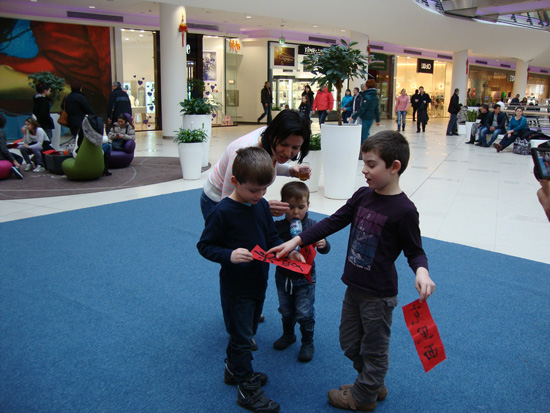2月23日,孔子学院组织了“欢乐春节”活动的“中国文化体验日”。首都医科大学段平教授带领索非亚第18中学学生表演了中国传统健身项目太极拳。孔院瓦尔纳市教学点志愿者教师表演了中国茶艺,并请观众现场品茶。索非亚18中志愿者教师表演中国书法,并现场教授观众用毛笔写出自己的姓名。志愿者教师教授观众打中国结和剪窗花。许多现场观众对中国文化显示出浓厚的兴趣,纷纷现场尝试写毛笔字,剪窗花和打中国结,许多孩子们也纷纷索要用毛笔给他们写的中国字姓名,现场气氛十分活跃。