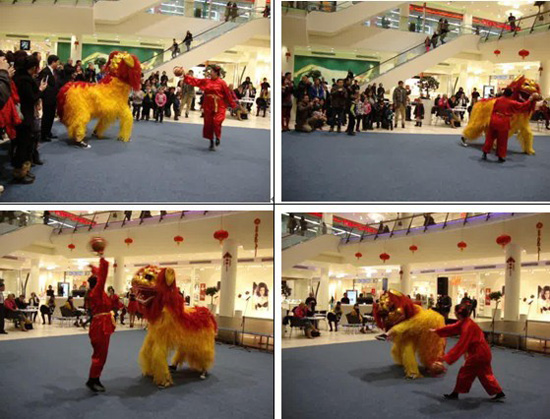 2月19日,孔子学院组织了活动开幕式的舞狮表演,“玄圭武术俱乐部”的小伙子们把狮子舞得上下翻滚,精湛的表演博得了场上观众的阵阵喝彩,为“欢乐春节”活动拉开了序幕。