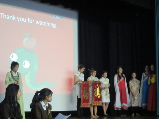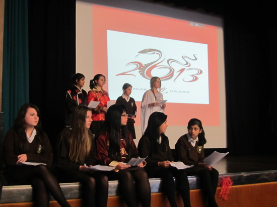 英格兰半岛孔子课堂(Peninsula Group Confucius Classroom)的德旺普女校(Devonport High Schoolfor Girls)多年开展中文课程,同时也注重文化的熏陶,取得了良好的效果。春节期间的“Chinses New Year Assembly”活动已成为学校校历上的一个亮点。为了庆祝蛇年春节的到来,2013年2月6日,八年级中文班的学生为全校师生献上了精彩的演出。