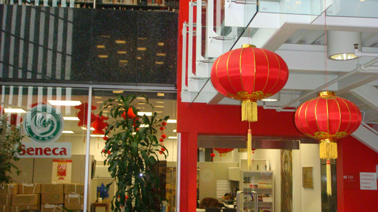 孔院邀请圣力嘉学院设计系视觉艺术专业的学生用象征着吉祥的中国结、红灯笼和工艺鞭炮把孔院办公室及圣力嘉学院数个校区装饰一新。整个校区充盈着喜庆的气氛。