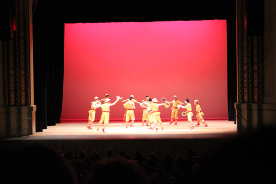“新上海马戏团”的20余名杂技演员自2012年11月来到美国进行巡回演出,此次在特洛伊大学的表演是阿拉巴马州的首场演出,他们为千余名观众奉献了一场揉合了杂技、舞蹈、变脸、音乐等多种艺术表现形式的精彩杂技大餐。演出一开始愉快的中国音乐就带动着全场的观众打起了节拍, 为演出营造了一个良好的氛围。顶灯登高及高空弧行踩凳表演时,观众们屏住呼吸,看到表演者完好无恙,全场掌声雷动。西方杂技我们常常可以看到小丑的身影,而中国杂技中的帽子杂耍则以其技巧性及幽默让人忍俊不禁,缓解了大家在看登高表演时的紧张感。整场演出高潮迭起、精彩纷呈,杂技演员们冷静、巧妙、准确的技巧和千锤百炼的硬功夫表演,使得掌声和惊叹声响彻座无虚席的剧院。演出结束后观众们仍旧激动不已,不由自主的全体起立并热烈鼓掌,不停地讨论着刚才的精彩片段。有的观众说:“这是我看过的最特别的杂技表演,手都拍红了。”有的说:“中国文化太深奥了,每一段表演都让人回味无穷。”