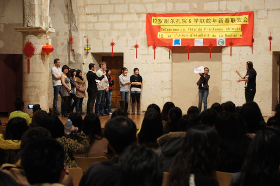 在孔子学院遍地开花、中华文化广为传播的今天,中国农历新年已经不再仅仅是中国人的盛会,而开始受到全世界人民的关注。对于同在异国的同胞,我们的春节联欢是一场亲人的聚会;对于法国友人,我们的春节联欢是一场中国文化的盛宴。进入2012年下半年之后,拉罗谢尔孔子学院陆续接到了不少关于春节的问询,众多法国学生、当地民众、华人华侨以及中国留学生期待孔院能够在新春之际举办一场盛大的活动,并要求参与到我们的活动中来。