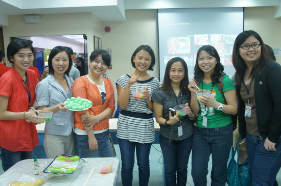 大厅的中间,先是由志愿者老师示范如何包汤圆,煮汤圆,怎样辨别汤圆熟了没。几场示范下来,学生们都跃跃欲试,开始制作自己的汤圆。当然,民以食为天,最重要的当然是品尝美食,志愿者们一刻不停地做着汤圆为的是让每一个学生都能吃得心满意足。
