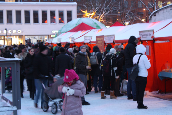 2013年2月9日,正值中国农历的大年初一,在远隔万里的芬兰首都赫尔辛基的水晶广场上,到处张灯结彩,人流不息,人们聚集在此共同参加中国传统民俗活动——春节庙会。赫尔辛基大学孔子学院也有幸参予到这次庙会活动当中。在孔院的展位上陈列着各类汉语学习书籍,如《当代中文》,《汉语800词》,《跟我学汉语》,《快乐汉语》,《汉语乐园》等。这些书籍吸引来了众多对汉语感兴趣的外国朋友,他们有的争相购买特价优惠的图书,有的积极询问孔院开设课程的情况,孔院展位前人头攒动,场面热闹。通过这次活动,赫尔辛基大学孔院进一步推广了中国文化,扩大了社会影响,让更多的芬兰人对汉语产生兴趣,促进了两国间的文化交流。