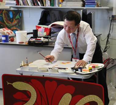 最后,学校还邀请了曾在全球华人书画大赛中获奖的中国艺术家罗传智先生和在中国大学生武术比赛中获得五块金牌的陈德清师傅来校做生动的书法表演、亮丽逼真的中国画展示、精彩的舞狮表演和令人惊叹的功夫表演。学生们深深地被中国文化吸引了。在场的许多学生还兴致勃勃一同参与,整个现场洋溢着浓浓的中国情结。