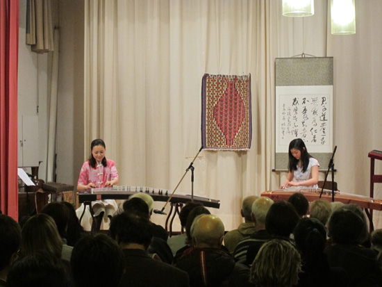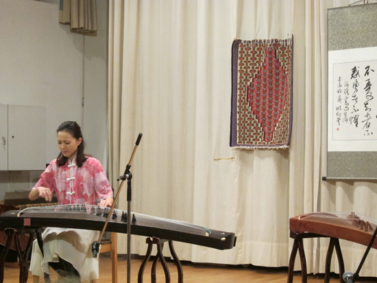 随后,年轻的中国古筝演奏者郭嘉颖女士用她那动人的弦声带领听众们开始了中国之旅。她那优美的乐声荡漾在整个大厅,时而如潺潺的流水,时而如飘雪的山巅,让人忘却了时间与空间。最后,她和慕尼黑孔子学院学员康理莲为大家献上了一曲中国民歌《井冈山上红太阳》,结束了本次音乐之旅。