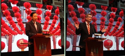 中国驻丹麦大使李瑞宇和哥本哈根市长Frank Jensen致新春贺词。