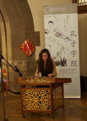为了庆祝中国最重要的传统节日春节,格拉斯哥大学孔子学院在2月初举办了系列庆祝活动,取得了极大的成功。2013年2月7日中午,一场别开生面的中国传统音乐会在格拉斯哥大学古色古香的音乐厅展开,各种传统乐器为观众演奏了一首又一首美妙的音乐,笛子、葫芦丝、扬琴、锣鼓配合着悦耳的歌声,在场的观众无不为之神迷。
