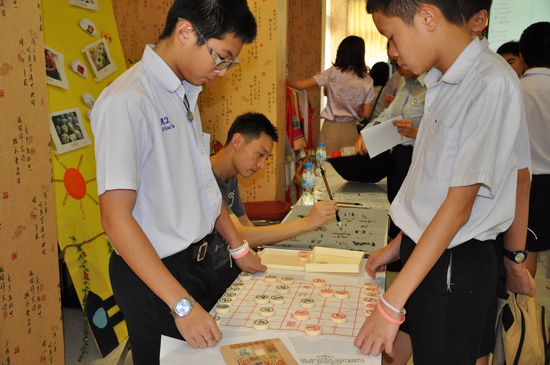最后是中国文化体验与游戏环节。学生们不仅体验到下象棋、写毛笔字、吹葫芦丝等中国文化,同时也兴高采烈地参与了 “筷手无敌”、“你说我猜”等中文游戏。