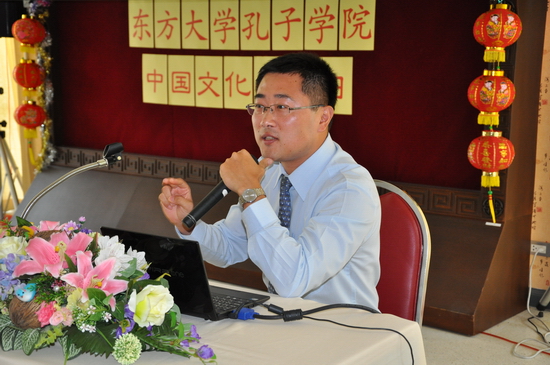 随后,东方大学中文系主任李淑英老师为大家介绍了东方大学中文专业以及相关招生说明,并鼓励学生们报考东方大学中文专业。东方大学孔子学院中方院长缪立懿也为现场师生简要而生动地讲解了中国概况、留学中国介绍、中国知名大学介绍以及孔子学院奖学金项目等,吸引了学生们的广泛兴趣。曾在温州留学的中文系学长们用丰富的图片介绍了温州留学的生活,更加增进了学生对留学中国的了解。