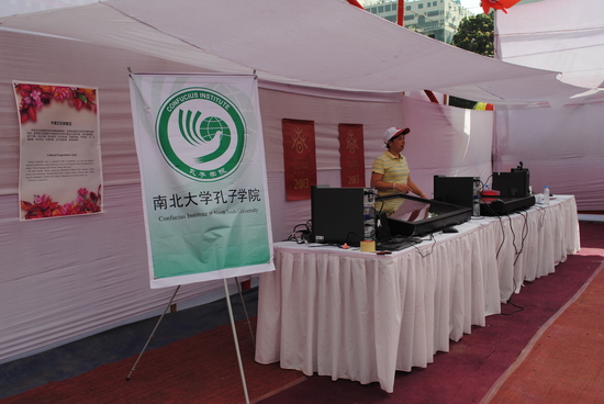 孔子学院展区还向游客呈现了书法、茶艺、剪纸、中国结等中国传统艺术,并展示了千余册国家汉办/孔子学院总部赠书。同时,向游客们介绍关于孔子学院和汉语课程。不少游客现场就报名注册了孔子学院的汉语课程。