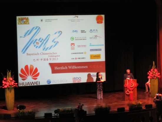 2月28日,第二届“巴伐利亚——中国春节2013”晚会在慕尼黑市特莱西娅草坪广场的会议厅举行。450多位来自巴伐利亚州政界和商界的嘉宾出席了此次晚会。此次晚会共分两个部分,一部分是内场的报告及文艺表演,另一部分是外场的文化平台展示。