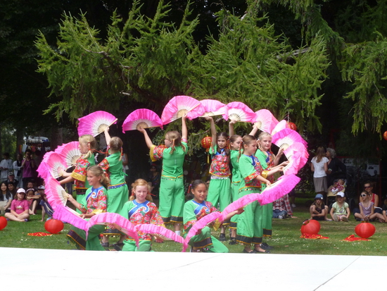 伯伍德小学的学生表演扇子舞“茉莉花”
