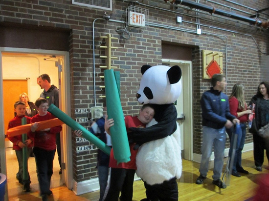 孩子们一一给了熊猫最热烈的拥抱(李泽达同学扮)