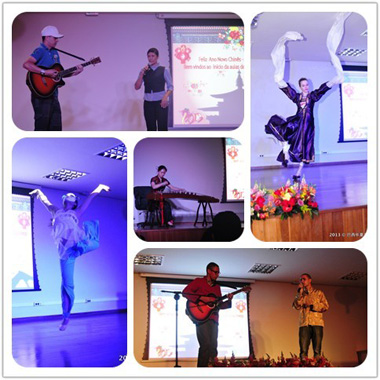 活动上,来自巴西华夏商务文化中心的演出人员表演了古筝、中国舞蹈、以及铿锵有力的中国歌曲《北京北京》,圣保罗州立大学孔子学院的学生也为大家带来了精彩纷呈的中国舞蹈《水袖舞》,极具特色的歌曲《对不起,我的中文不好》,《恭喜恭喜》等节目。