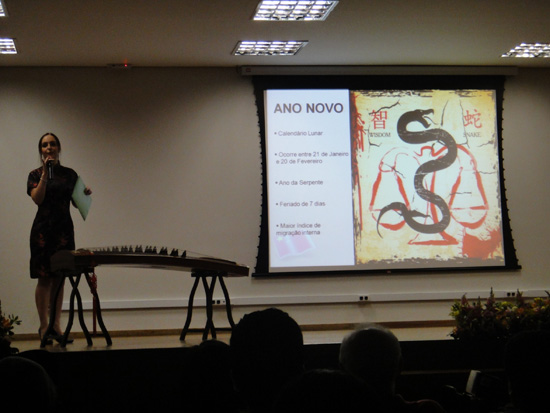 活动伊始,展示了《神州中国》短片,从中国历史,文化,经济和人文各角度全方位为大家展示了蒸蒸向上的中国。之后,圣保罗州立大学孔子学院巴西本土教师MARIANA向参加活动的学生及其亲友们对中国的春节做了介绍,以图文结合的形式向大家展示了中国春节的一些活动,饮食和一些富有代表意义的春节符号,如红包等。