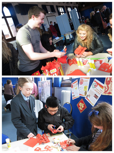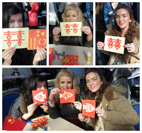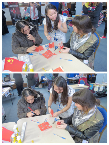 汉办老师教Queen Elizabeth Sixth Form College的学生们剪纸
