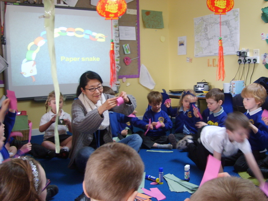 国家汉办教师师杜西萍教小朋友做手工蛇