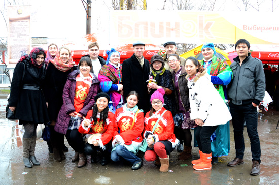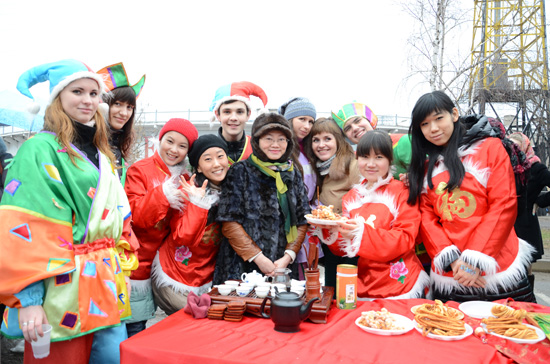 乌克兰卢甘斯克孔子学院作为卢甘斯克当地很有影响力的机构,六年来积极融入当地社会参加当地组织的大型活动,当然本次“谢肉节”活动也不例外。一个月前,当地主办方几次前来卢甘斯克孔子学院共同商议本次“谢肉节”活动的有关事宜。2013年3月16日孔子学院全体教师和志愿者冒着严寒和雨水来到卢甘斯克展览广场参加了乌克兰市政府举办的“谢肉节”活动。