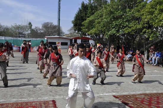 2013年3月15日,国际台巴基斯坦广播孔子课堂学生在合作单位---根基千禧教育集团举办的运动会开幕式上进行了太极拳汇报表演。参加本次太极汇报表演的学生近一百人,来自小学四到六年级。学生们身着统一服装,分别表演了八段锦、二十四式太极拳以及四十八式太极拳。巴基斯坦学生们的精彩表演,给观看演出的观众留下了深刻的印象。学生们的太极拳表演一招一式,有板有眼,博得了观众们的热烈掌声。管俊康老师在观众们的热烈掌声中,展示了太极剑、太极扇,将本次汇报演出的气氛推向了高潮。