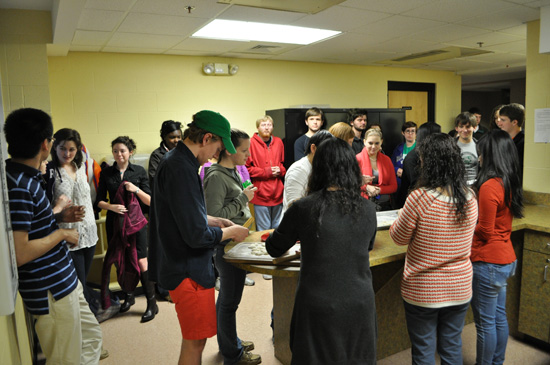 2月8日晚六点,普莱斯比学院CIH大厅里灯火通明、热闹非凡,孔子学院师生五六十人齐聚CIH大厅学包饺子、聊天。参加活动的学生除了中国和美国学生,还有来自韩国、日本、德国和摩洛哥等国的留学生,大家通过学习包饺子来了解中国的传统文化,并且尝试着用不同的方法来包。热乎乎的饺子刚一出锅就被一抢而光,足见其受欢迎的程度。