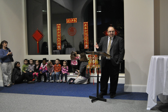 2月11日晚,孔子学院举办新春招待会,受邀前来的嘉宾有克林顿市及劳伦斯郡的教育界代表、普莱斯比学院及友好孔院的部份教师代表等。孔院院长刘子华博士首先致欢迎辞。接看普莱斯比学院常务副校长致辞,他对孔院在教学及文化交流方面的成绩予以了肯定。随后,桑维尔幼儿园的小朋友为大家表演了《新年好》和《两只老虎》等节目。