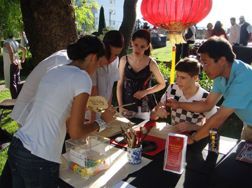 本届盛会以“跨文化与艺术”为主题,分文化展示和艺术表演两部分。各展团根据参会要求分别准备了内容丰富的文化展品和精彩的文艺表演。在各展团中,里斯本大学孔子学院的中国书法和陈氏太极拳表演可谓独树一帜, 成为当日的亮点。由王锦程老师和现场前来协助的两位澳门志愿者挥毫洒墨的“起中国名字”书法活动吸引了众多民众的参与,直至宣纸耗尽;而由啜京中教授在悠扬的音乐中表演的似行云流水的“陈氏太极拳老架一路”也令葡萄牙朋友耳目一新。