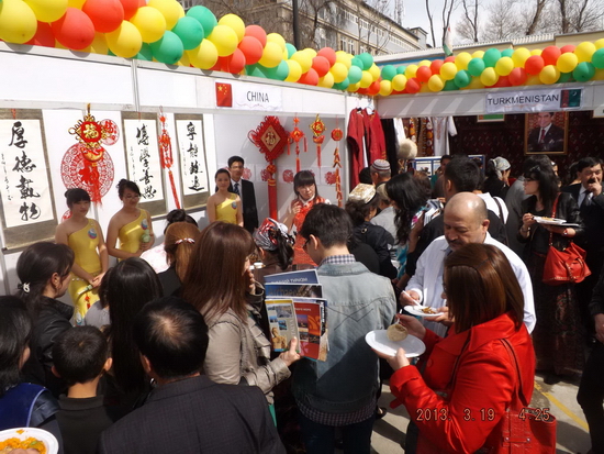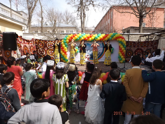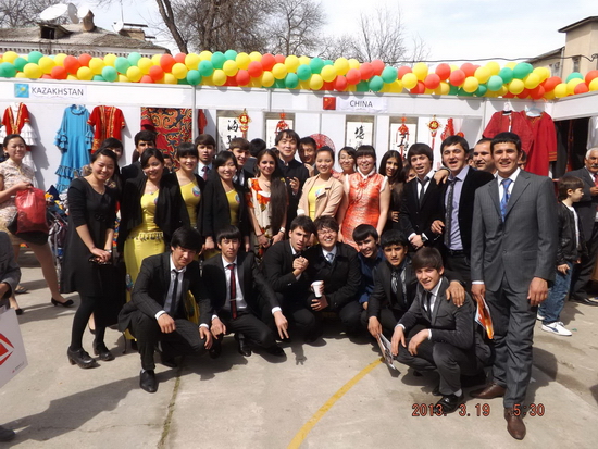 3月21日是塔吉克传统新年“纳吾鲁兹节”,每年这一时间前后,塔吉克斯坦各大中小学都会举行各种各样的文化活动。2013年3月19日,一场以欢庆“纳吾鲁兹节”为主题的大型国际文化交流活动在杜尚别国际学校盛大举行。此次活动有土耳其、哈萨克斯坦、吉尔吉斯斯坦、土库曼斯坦、巴基斯坦、印度等国使馆参加。塔吉克斯坦国立民族大学孔子学院应邀亮相,为参加活动的各国嘉宾带来精彩的文化盛宴,受到各路参观者与主办方的交口称赞。