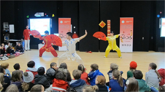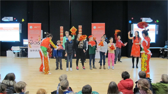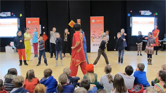2013年2月26日,英国伦敦伯克利中学盼来了期待已久的春节庆典活动。伯克利中学校长Jo Armitage以及该校七年级全体师生热情高涨地参加了此次活动。此外,伯克利中学还邀请了该校周边两所小学Eleanor Palmer School和Brookfield School)的师生代表到场观看演出并参与互动。