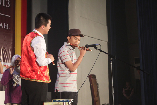 随后竹笛、葫芦丝、琵琶以及古筝等中国传统乐器的演奏,为观众带来了知名的《梅花三弄》与少数民族舞曲,让很少感受到中国曲风的马来人耳目一新。音乐无国界,即使两种文化相差千里,即使观众无法真正明白乐曲的含义,但是音乐传达出的豁达精神与无疆的自由已经被千名观众接纳,从他们积极参与互动,争相上台参与体验吹奏竹笛便可看出他们对中华文化的喜爱。随后《山歌好比春江水》以及《茉莉花》等传统民歌将观众带到了音的世界,徜徉在乐音乐曲的殿堂。