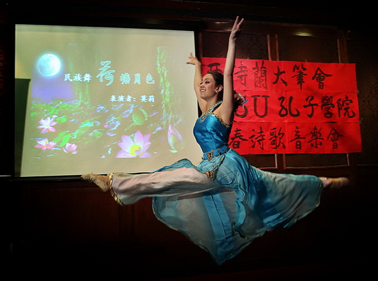 笔会文友之女莫丽表演自己创作的舞蹈《荷塘月色》
