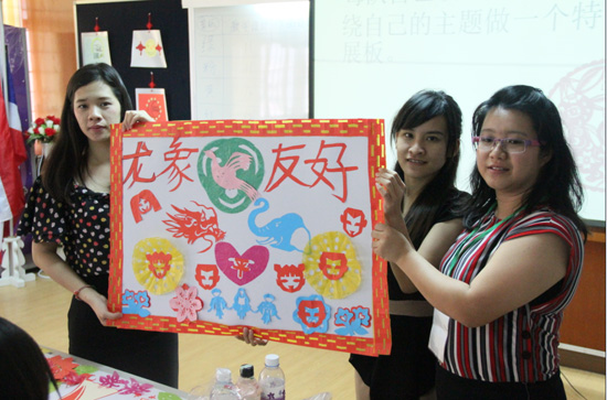 基于多年的教学经验,温象羽院长对此次剪纸课做了总结和评价。在对课程的创新给予了充分的肯定后指出,剪纸是负载中国文化的民间艺术形式之一,除了技巧的提高,能够创作出饱含中国文化元素的作品是本土汉语教师的高境界。她鼓励学员们在进一步深化剪纸训练的教学方法和技巧的同时,深度感悟中国文化,并把这种做法借鉴到其他的中华才艺课当中。
