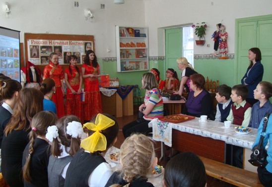 茶艺表演在枚格中学的校史馆举行。校史馆陈列着小镇的的历史文物和学生自制的艺术作品,散发着浓浓的文化气息,让人感受到这个学校对文化传承的高度重视。在这里举行茶艺表演同样让这些俄罗斯的小朋友体验到了中国文化的魅力:醇厚的铁观音,清香的龙井茶,精致的中国茶具,室内充满了诱人的茶香。。望着孩子们手捧的茶杯,细细地品尝着用贝加尔湖的水冲泡出的中国茗茶,看着周围展品架上的大小展品,让人感到这是一幅中俄两国文化交融的美丽画卷。