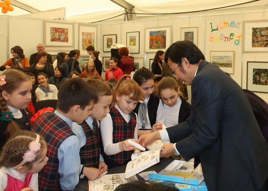 此次活动得到了中国驻摩使馆的大力支持,尤其是大使夫人杜英女士亲临书展现场,帮助整理书籍和裁剪书法用纸,并和摩尔多瓦儿童亲切交谈,为书展带来了特有的氛围。
