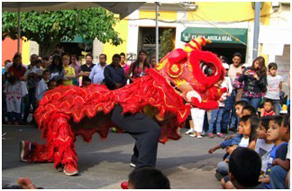4月30日, 由墨西哥古城区政府主办的儿童节庆祝活动在墨西哥城梅尔塞德社区广场持续了整整一天时间。受墨西哥城古城区基金会和古城区文管会的邀请,墨西哥国立自治大学孔子学院联合墨西哥华人社团,为现场的孩子们带去了精彩的舞龙舞狮表演。舞龙舞狮是最受墨西哥人民尤其是儿童欢迎的中国节目之一,很多家长和孩子专程为此而来,很多孩子看到表演兴奋不已。许多家长表示希望孩子将来学习汉语。