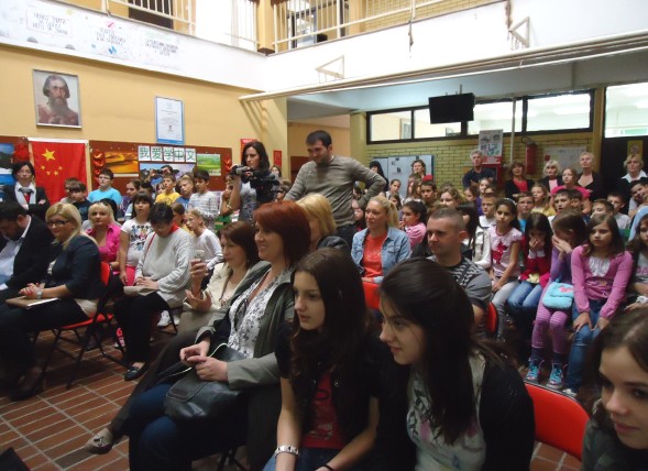 走进“Vozd Karadorde”小学的大厅,浓浓的中国风情立刻扑面而来,中国结,剪纸以及中国自然,人文图片等将整个大厅装饰得古色古香。汉语课堂的学生和家长们在此共聚一堂,与汉语和中国文化进行了一次亲密的接触。