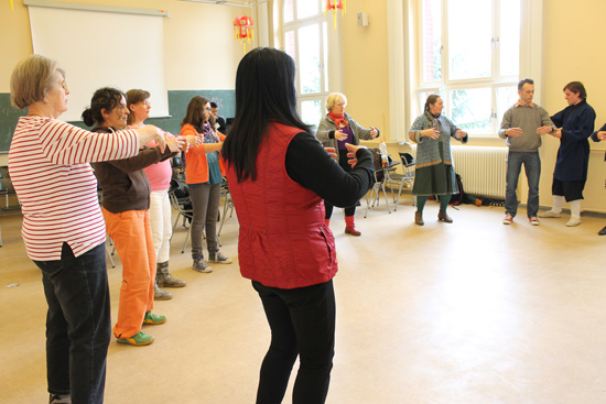 2013年4月27日柏林自由大学孔子学院在其成立7周年之日举办了开放日活动,一年一度的开放日活动,备受柏林市民的关注和期待。此次开放日,孔院为答谢柏林市民一直以来的关注和支持,准备了多元的体现中国元素的活动:少儿汉语谜语,丰富多彩的功夫表演,包罗万象的图书展示,“小鹿的新颜色”主题展览,读书会,少儿及成人汉语体验课,书法与绘画入门,中国名字及一次中国木偶剧表演。而且,在活动的安排上非常的合理有序,孔院制作了合理的时间安排表,每个活动室还张贴了清晰的图标,这样来宾可以有条不紊地参与自己感兴趣的活动。