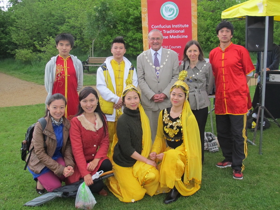 伦敦中医孔子学院演出团队和切斯顿镇长和镇长夫人合影