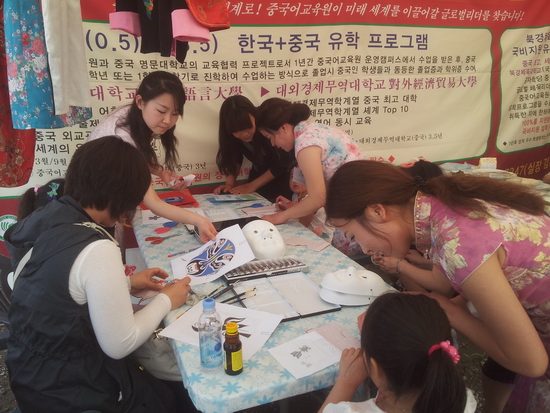 体验剪纸和京剧脸谱的韩国学生