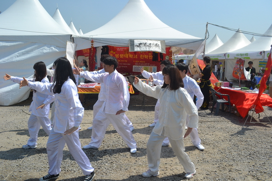 庆典于5月11日上午10点正式开始,泰成中高等学校孔子课堂中国语教育院院长李玉姬参加了开幕式,并上台发言。当日,泰成中高等学校孔子课堂中国语教育院为南杨州市民准备了一道丰盛的中国文化大餐,孔子课堂中国语教育院派出8名志愿者为南杨州市民展示了中国传统武术太极拳、传统乐器葫芦丝、京剧脸谱、中国剪纸、中国传统服饰、中国烹饪等文化项目,其中,由孔子课堂的学生表演的太极拳、五步拳和葫芦丝演奏,吸引了不少市民的眼球,赢得了阵阵喝彩。