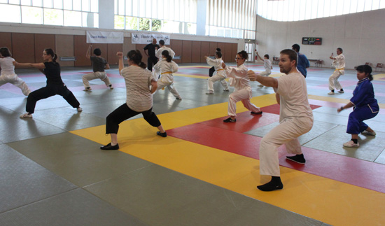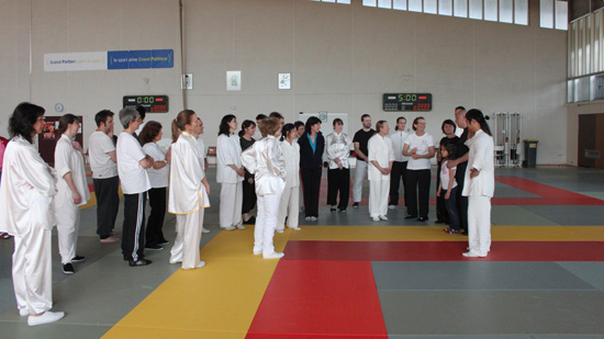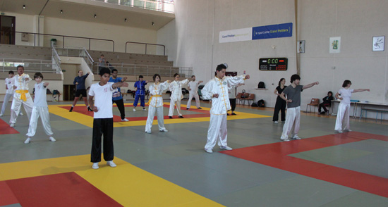 Roger ITIER先生熟知中国武术文化,他指导学生们在学习基本套路的同时,要了解深厚的中国文化。“武林大会”上午是武术项目,下午是太极项目,学员们身穿中式盘扣褂,一招一式,颇为认真。这些学员中有幼儿园的孩子、中学生、大学生、公务人员、也有退休人士,几年以来,这些可爱的武术班学员们在本地掀起了一阵不小的武术旋风。