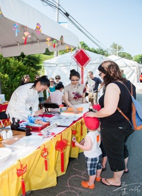 哈利法克斯是加拿大第一批引入龙舟节的城市之一,每年夏天都会在美丽的Banook湖畔如期举行龙舟节庆典和龙舟竞渡,今年也不例外。今年龙舟节于当地时间7月6日上午11时举行。夏日的炎热并没有阻碍圣玛丽大学孔子学院对龙舟节活动一如既往的支持。作为龙舟节合办方的圣玛丽大学孔子学院在专属展位精心布置了一个充满中国传统文化特色的“小舞台”。彩纸折的粽子挂饰与大红的中国结妆点在帐篷上交相辉映;关于端午节来历和习俗的大展板立在展位旁,过往的游客们或驻足查看,或开口询问;为外国友人取中文名并用毛笔写中文名书签的活动一如既往地受到游客们的欢迎;除此之外,古色古香的茶具和中国传统乐器现场演奏也成为了人们关注的焦点;孔子学院的简介和课程介绍板前的工作人员详细地为游客们进行着解说,人们也饶有兴趣地询问自己感兴趣的中国语言与传统文化课程。