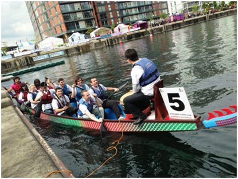 6月16日,由新华联谊会主办的2013年第二届英国端午龙舟会在曼彻斯特索尔福德码头鸣锣开赛。来自曼彻斯特大学孔子学院、K2、曼彻斯特学联(Manchester CSSA)和当地商业组织等计25支龙舟队参加了比赛。曼彻斯特大学孔子学院学生踊跃报名,积极参赛,中方院长孙立峰、英方副院长Karen Wang亲往现场助战加油。此次活动得到曼彻斯特市政府、当地各界组织、华人协会及中华人民共和国驻曼彻斯特总领事馆的大力支持。